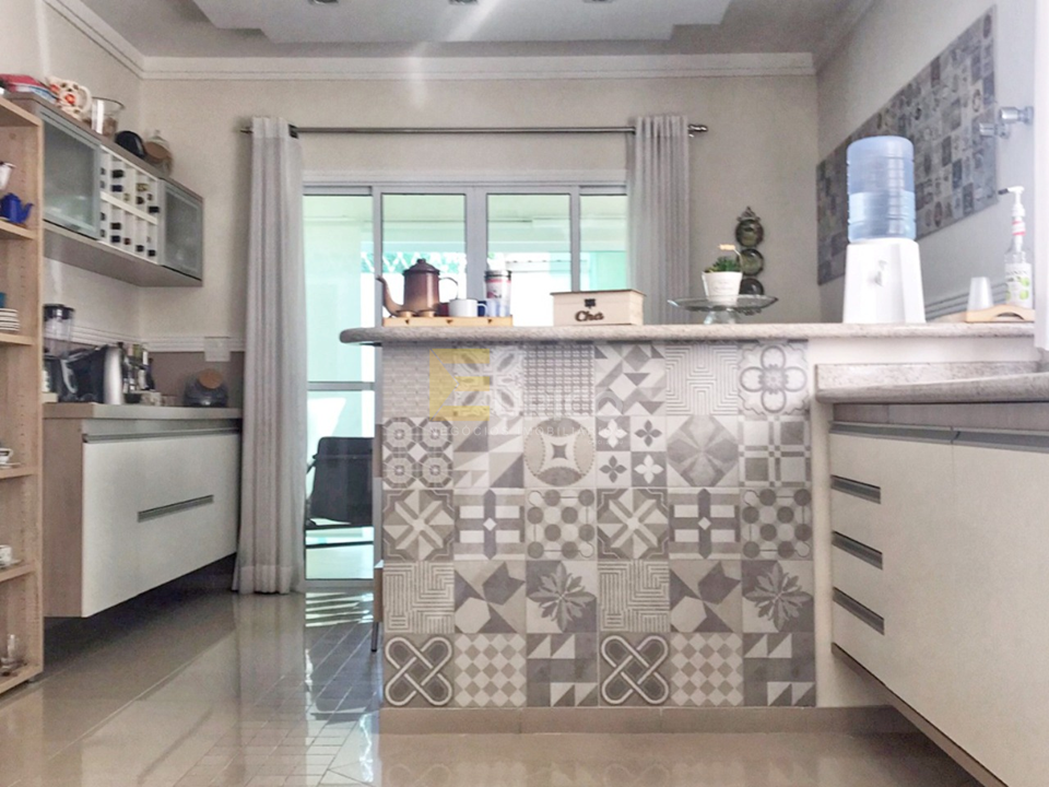 - Os acabamentos são de primeira linha, com destaque para a pedra da escada em granito arabesco, soleiras e lareira em crema marfil, pias em mármore português, proporcionando sofisticação em cada detalhe. A varanda envidraçada com persianas blackout é um lugar perfeito para relaxar e aproveitar uma boa leitura.