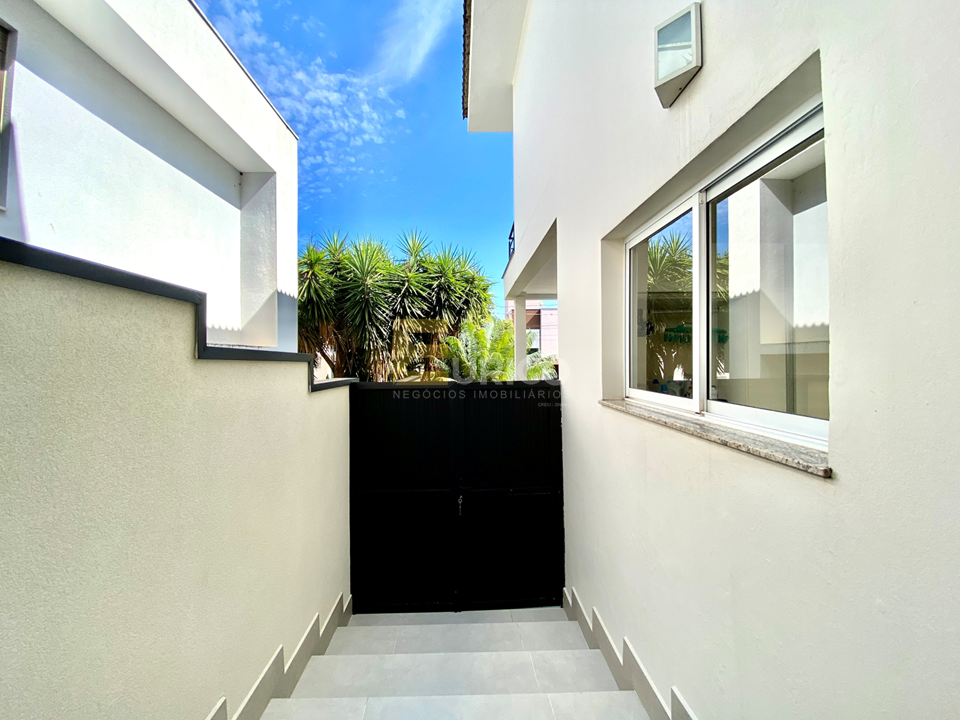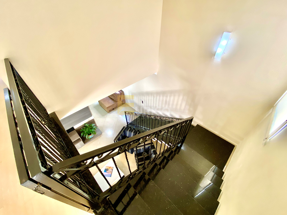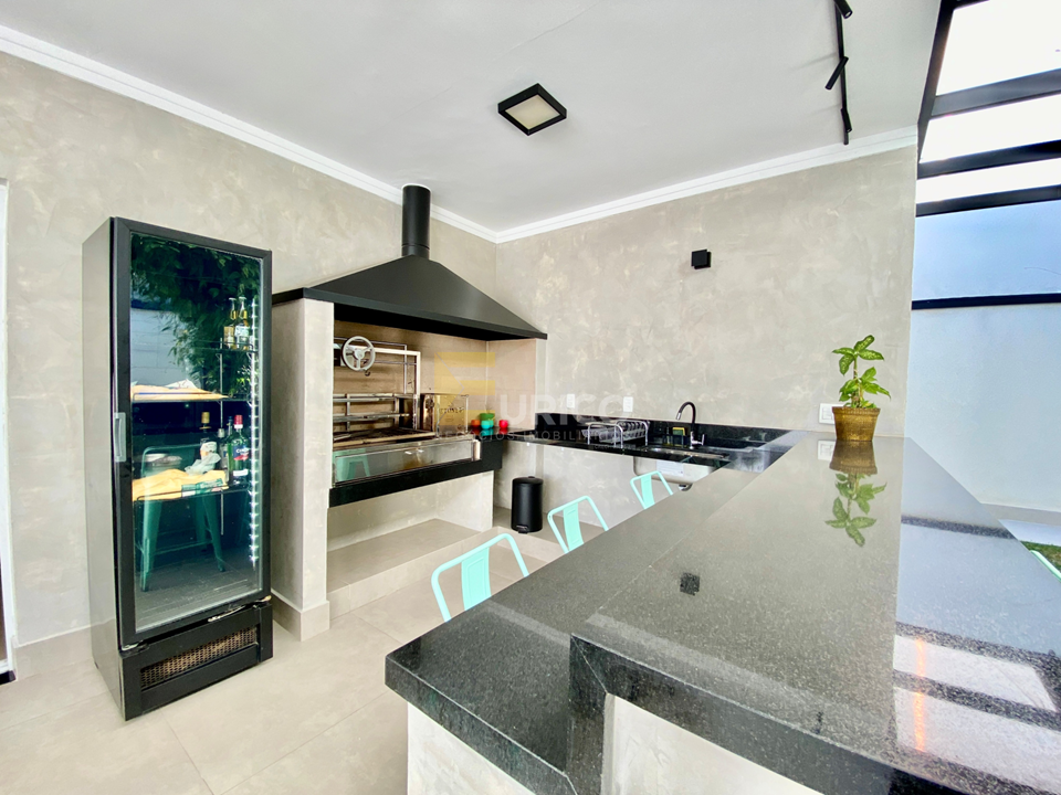 Escritório com armários, amplo lavabo, cozinha americana com armários planejados, ampla despensa, repleta de prateleiras em mármore, área gourmet com churrasqueira e pergolado, junto a um belíssimo jardim, lavanderia independente, com acesso externo ou interno